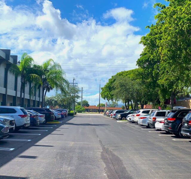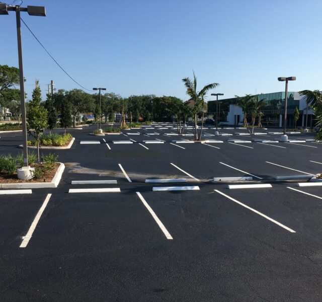 At Carl’s Plaza, sealcoating and striping refreshed the pavement’s look while extending its lifespan and maintaining traffic order.
